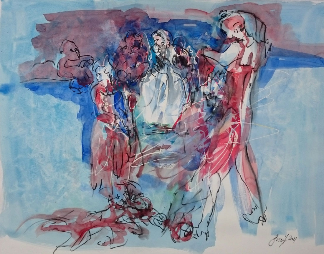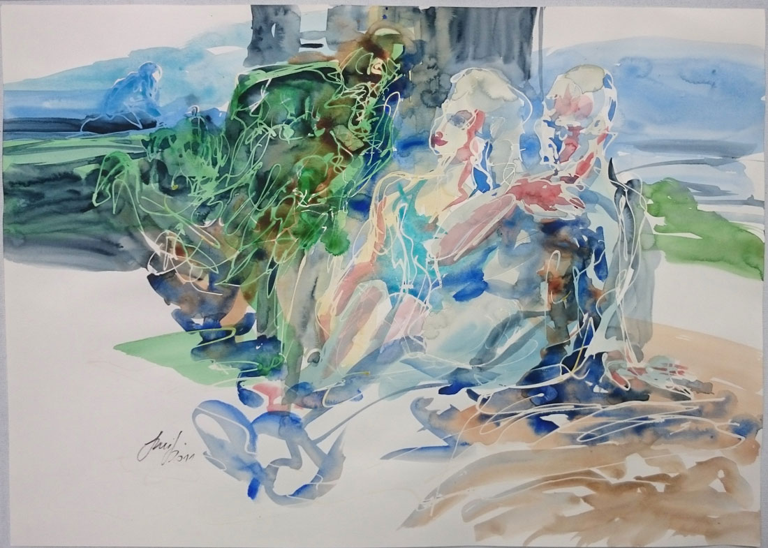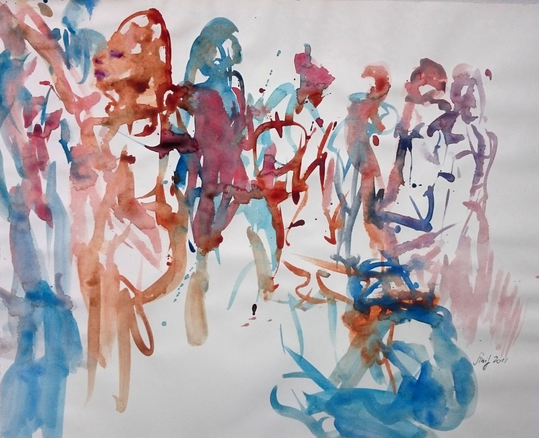 In meinen Arbeiten auf Papier geht es mir um mehr als figurative Darstellungen. Sie sind Rückzugsorte, in denen ich mich verlieren und gleichzeitig neu entdecken kann. Diese Orte entstehen aus einer tiefen Intuition heraus, die mich leitet, wenn ich Farbflächen auftrage, um das Weiß des Papiers zu durchbrechen.